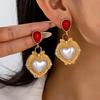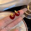 Średniowieczne, szkliwione czerwone kolczyki miłosne Przemysł ciężki, temperament, brzoskwiniowe kolczyki w kształcie serca