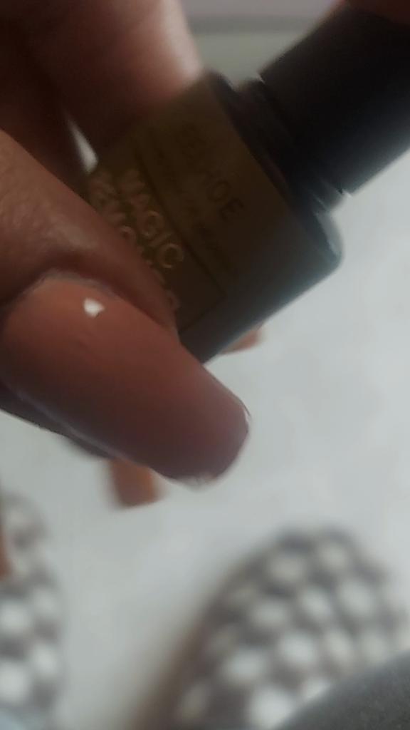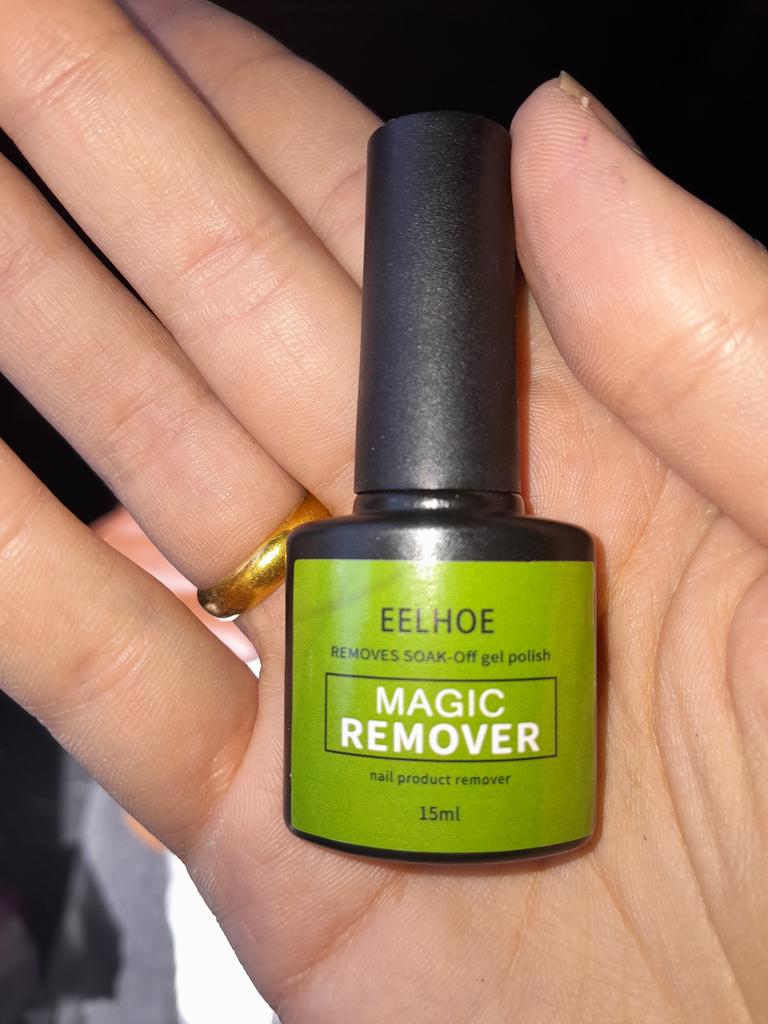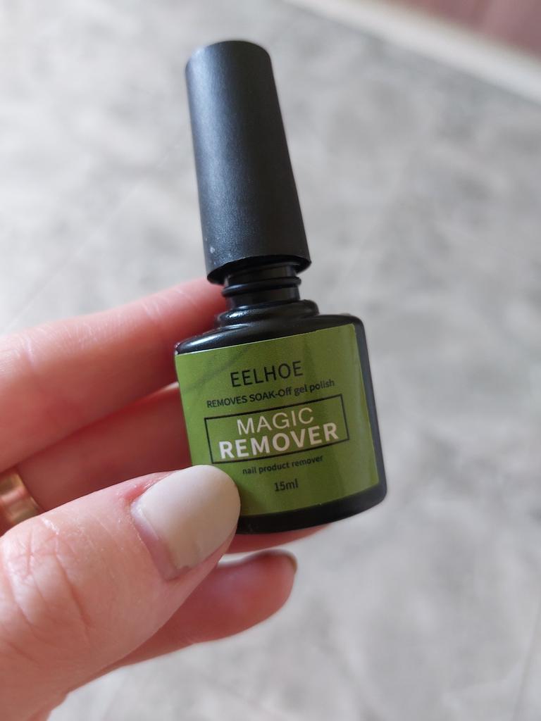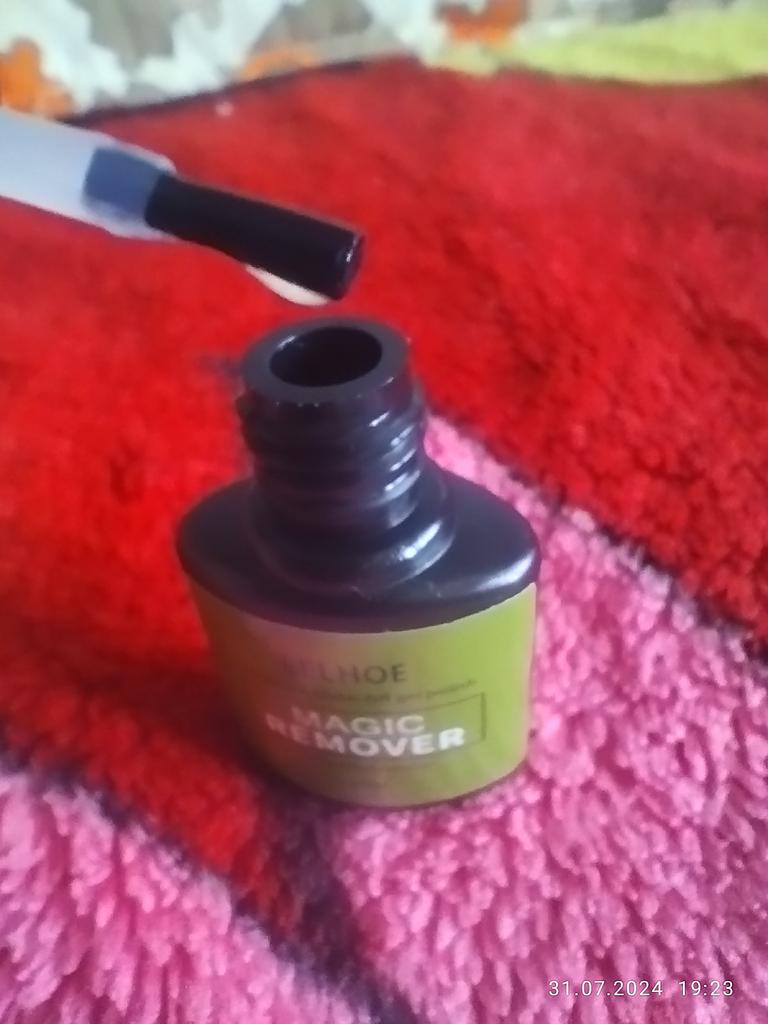 Wcześniej miałam na paznokciach lakier hybrydowy, po przygotowaniu paznokci zdjęłam wierzchnią warstwę pilnikiem i nałożyłam zmywacz, odczekałam 15 minut, ale nic się nie stało, po prostu wyschło jak woda. Po dokładniejszym zapoznaniu się z opisem produktu, ja zorientowałam się, że sprzedawca tego zmywacza nie wspomniał, że usunie lakier hybrydowy lub zwykły lakier do paznokci, polecam dokładniej przeczytać opis, bo dla mnie to strata pieniędzy. Cóż, jeśli chodzi o produkt, okazał się na zdjęciu, ale dla mnie to bez sensu...