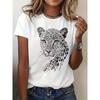 (Rozmiar azjatycki) Damska koszulka z krótkim rękawem Leopard Letter Trend z lat 90. Śliczny modny nadruk Lady Tee Top Odzież Casual Tshirt Damskie graficzne t-shirty
