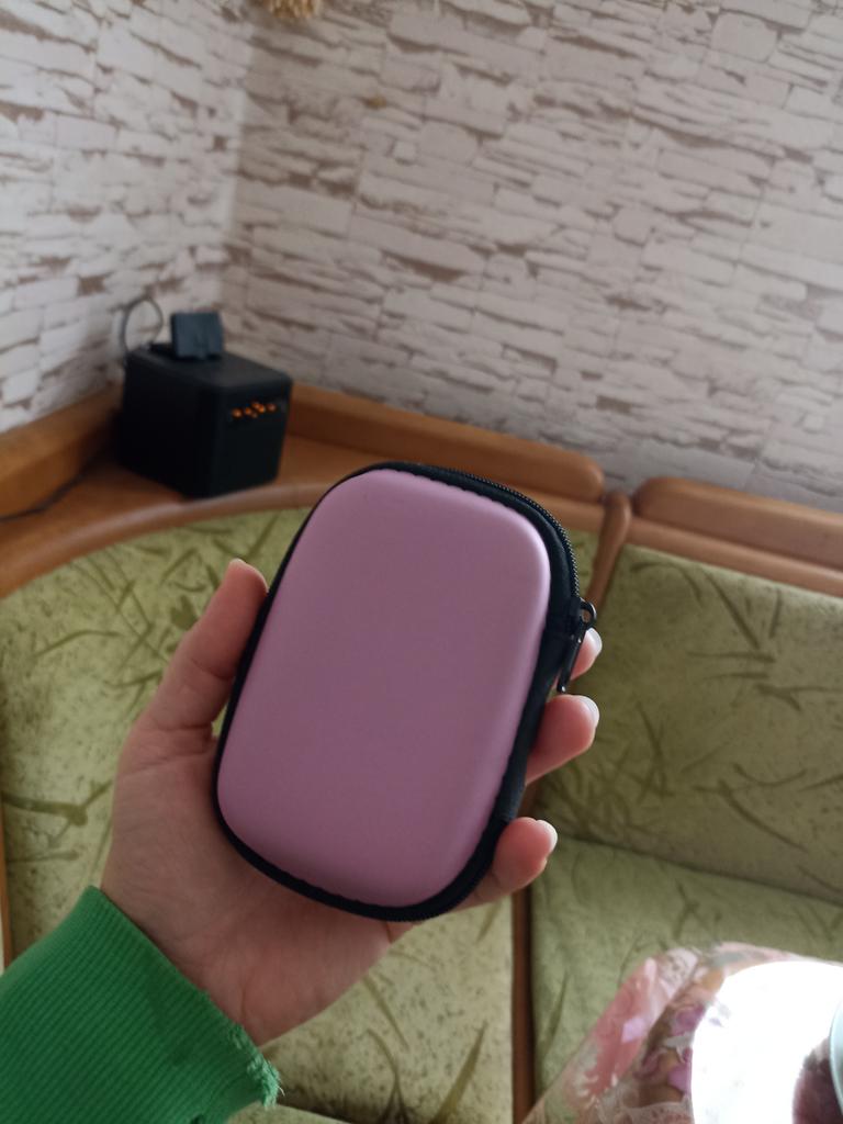 Taki jak na zdjęciu, bardzo wygodny do przechowywania i zabierania ze sobą słuchawek lub czegoś małego