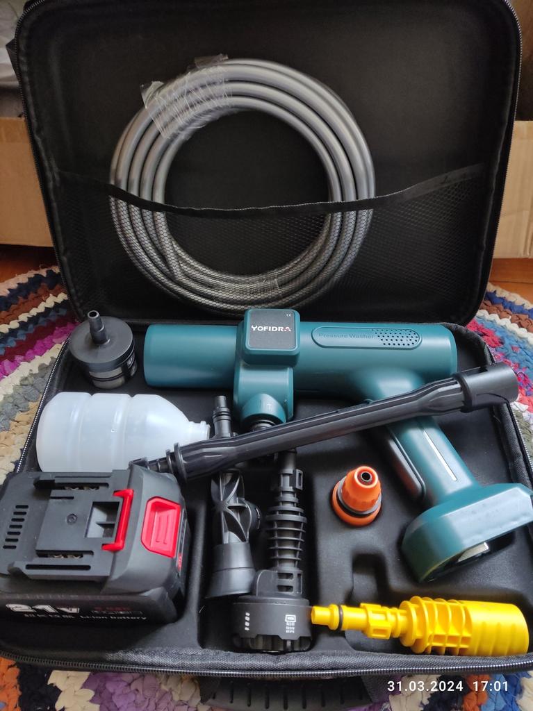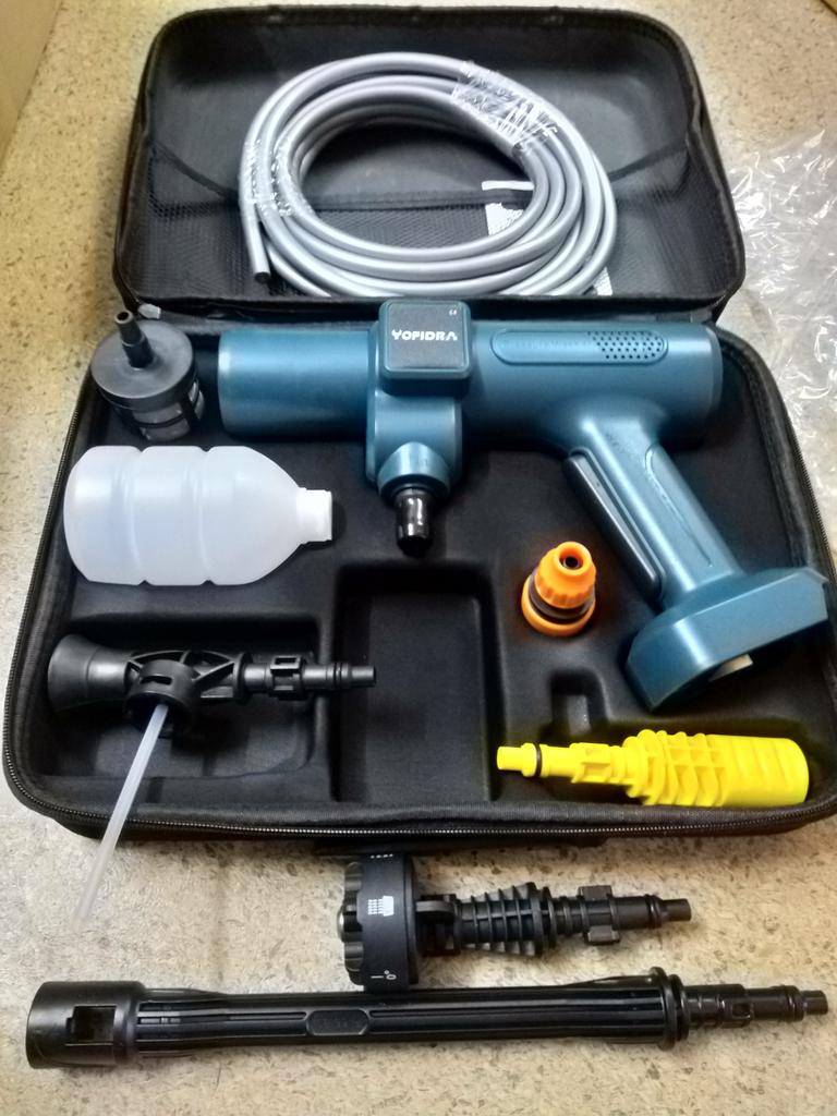 Otrzymałem zamówienie. Wszystko w komplecie. Złożyłem, sprawdziłem działanie. Działa. Strumień wody uderza w dłoń bardzo mocno. Urządzenie powinno dobrze myć samochód. Jako myjka kempingowa nawet bardzo dobrze.