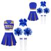 Dziecięce dziewczęce stroje do tańca cheerleaderek Bez rękawów, dekolt w kształcie litery V, list, krótki top z nadrukiem, plisowana spódnica, opaska do włosów, ręcznie kwiaty, skarpetki w paski