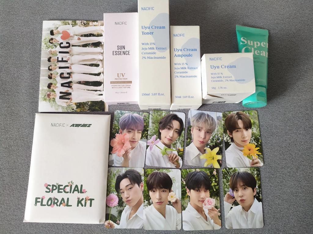[NACIFIC x ATEEZ] Zestaw nawilżający w kremie Flowering Uyu (5 produktów do pielęgnacji skóry) + ATEEZ OT8 + Pocztówka + Broszura