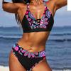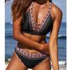 Damski strój kąpielowy typu tankini typu halter w stylu retro z grafiką i nadrukiem