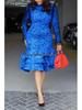 Charakteryzuje się pochlebną sylwetką w kształcie litery T, dopasowanym do talii krojem i siateczkowym nadrukiem dla dodatkowej elegancji.