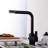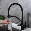 Matowy czarny kran kuchenny z czystą wodą Podwójny uchwyt Ciepła i zimna woda pitna Wyciągane krany kuchenne