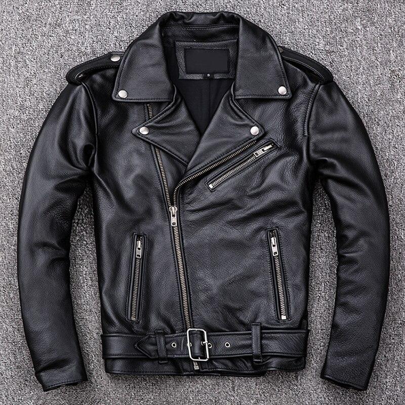 Chiński Rozmiar Klasyczne Motocyklowe Kurtki Z Ukośnym Zamkiem Skórzana Kurtka Męska Naturalna Skóra Cielęca Gruba Wąska Kurtka Motocyklowa Z Bydlęcej Skóry