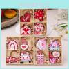 Projekt zawiera klasyczne elementy walentynkowe, takie jak serca, koperty, kwiaty i tekst w języku angielskim, tworząc radosną i romantyczną atmosferę.