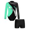 Dziecięce dziewczynki Łyżwiarstwo figurowe Gimnastyka Kostium Dżetów Hollow Back Patchwork Trykot z długim rękawem i spodenkami