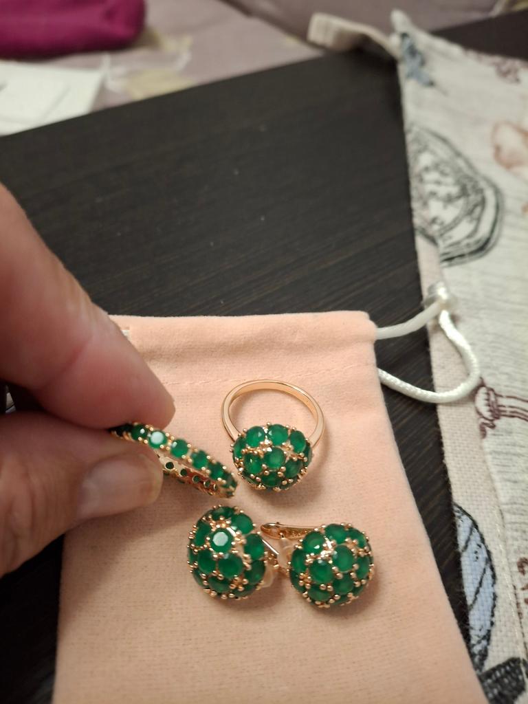 Zamówiłam pierścionek z nadzieją, że kamienie będą takie same jak te w koralikach do kompletu. Są lżejsze i mniejsze. Chociaż pierścionek jest piękny. Rozmiar jest trochę większy niż pozostałych pierścionków, które zamówiłam, rozmiar 8?! Niestety zestaw okazał się słabej jakości.