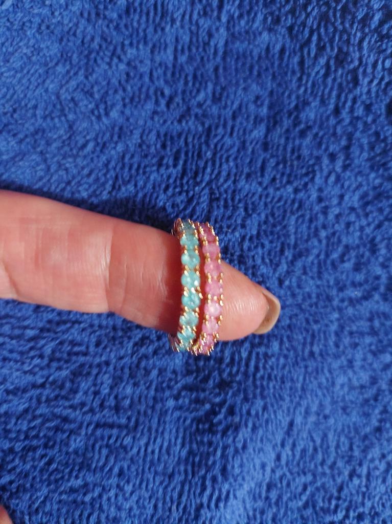 Kupiłam 2 pierścionki, różowy i zielonkawy. Pomyliłem się co do rozmiaru. Zamiast 10 można było wziąć 9. Bardzo ładne pierścionki. Dziękuję