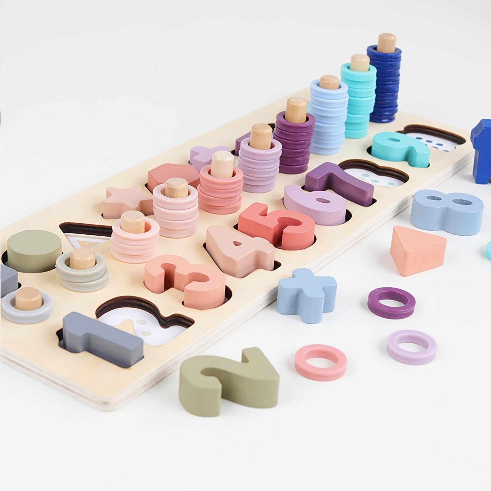 Rozjaśnij czas matematyczny - Drewniana wieża do liczenia kształtów z kolorowymi blokami liczbowymi dla dzieci i małych dzieci