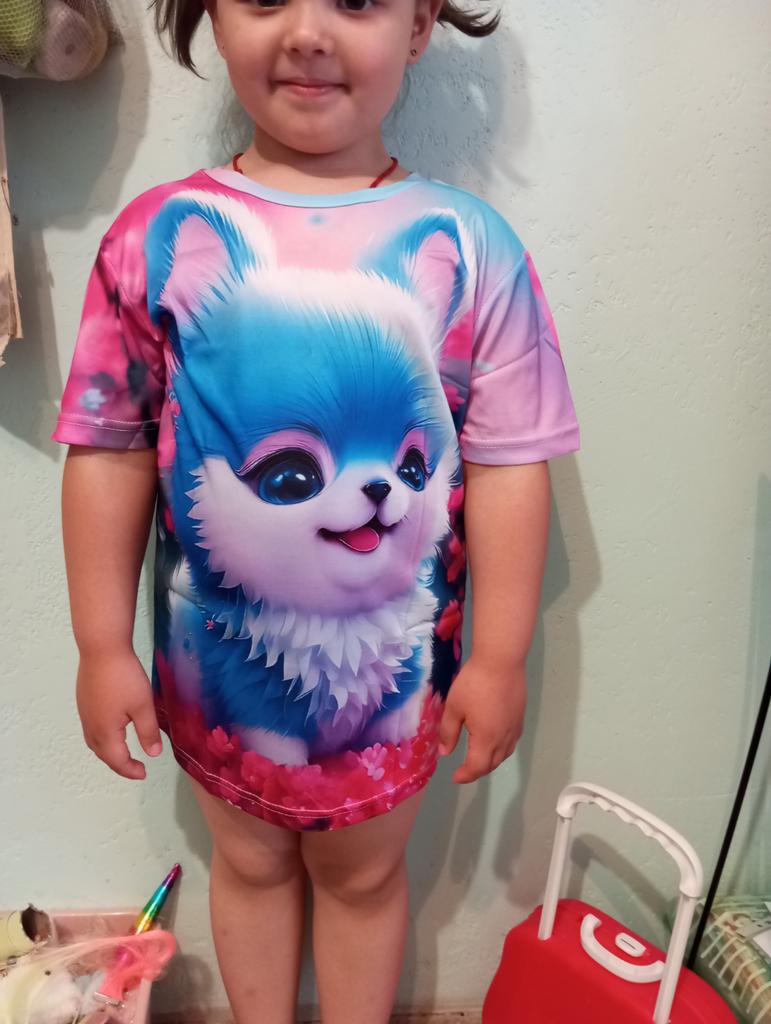Dziecko było zachwycone lekką, piękną koszulką. Rysunki po obu stronach.