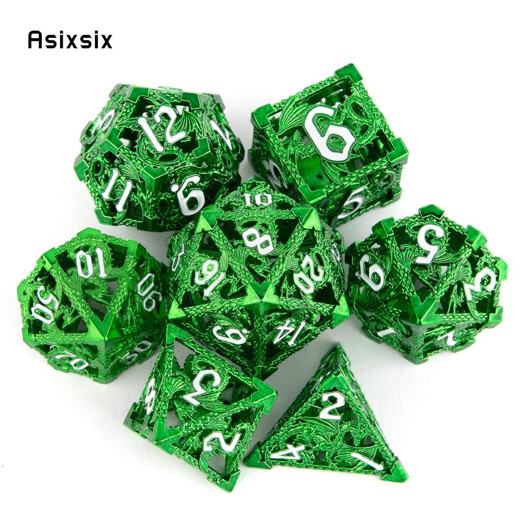 7 szt. Zielone Metalowe Kostki Latającego Smoka Puste Metalowe Wielościenne Kostki Zestaw Odpowiedni do Gry Fabularnej RPG Gry Planszowej Gry Karcianej
