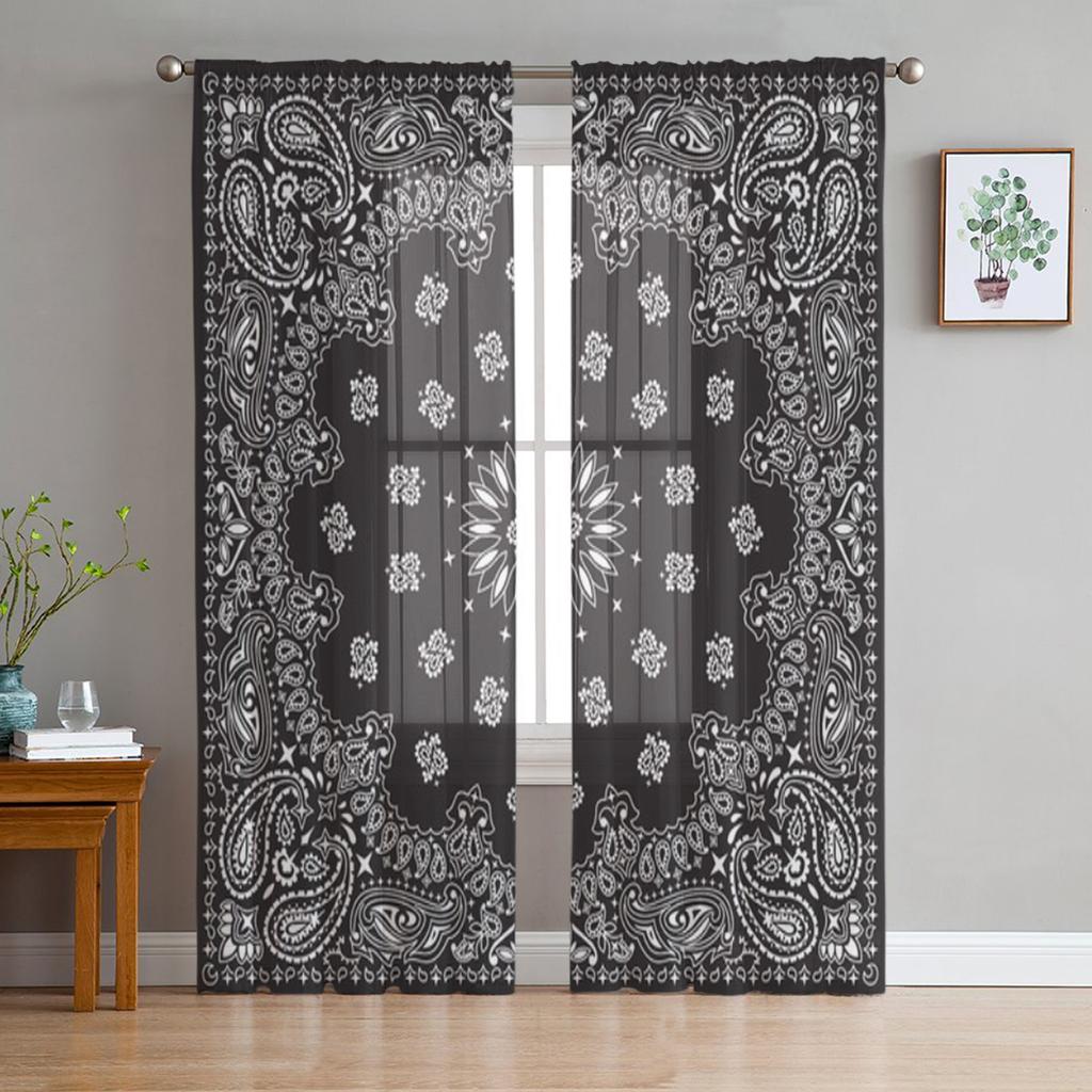 Czarne Zasłony Przezroczyste z Wzorem Bandana do Salonu Sypialni Zasłony Tiulowe Zasłony na Okno Kuchenne Panel