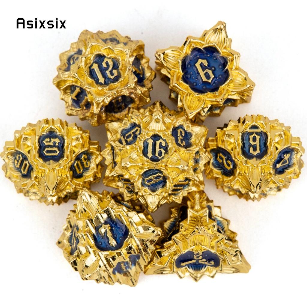 7 sztuk złoty niebieski kwiat lotosu metalowe kostki z litego metalu zestaw kości wielościennych nadaje się do odgrywania ról RPG gra planszowa gra karciana