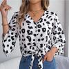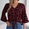 GMXIA Moda damska Casual Lato Nadruk w panterkę Rękawy 1/2 Dekolt w kształcie litery V Luźne bluzki i sznurowane szyfonowe topowe koszule