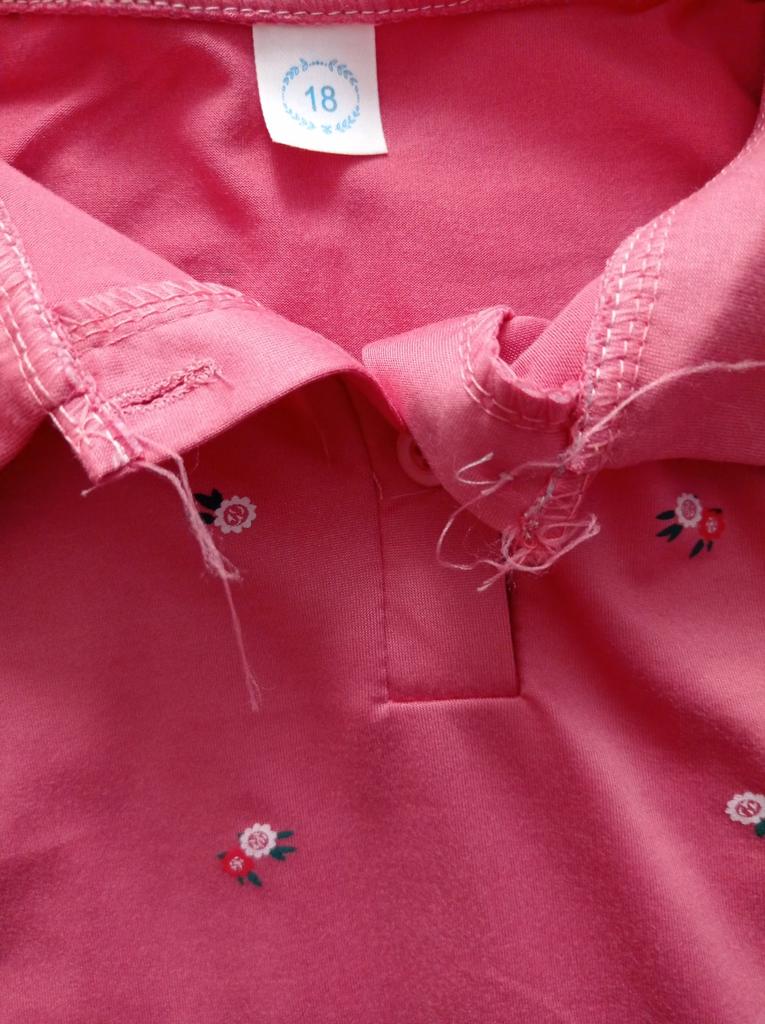 Materiał jest przyjemny. Kolor pasuje. Wady. Rękawy są długie i szerokie. Jakość szwów jest fatalna - wystają nitki, kołnierzyk jest krzywo przyszyty. Musiałam od razu wszystko zszyć od nowa.