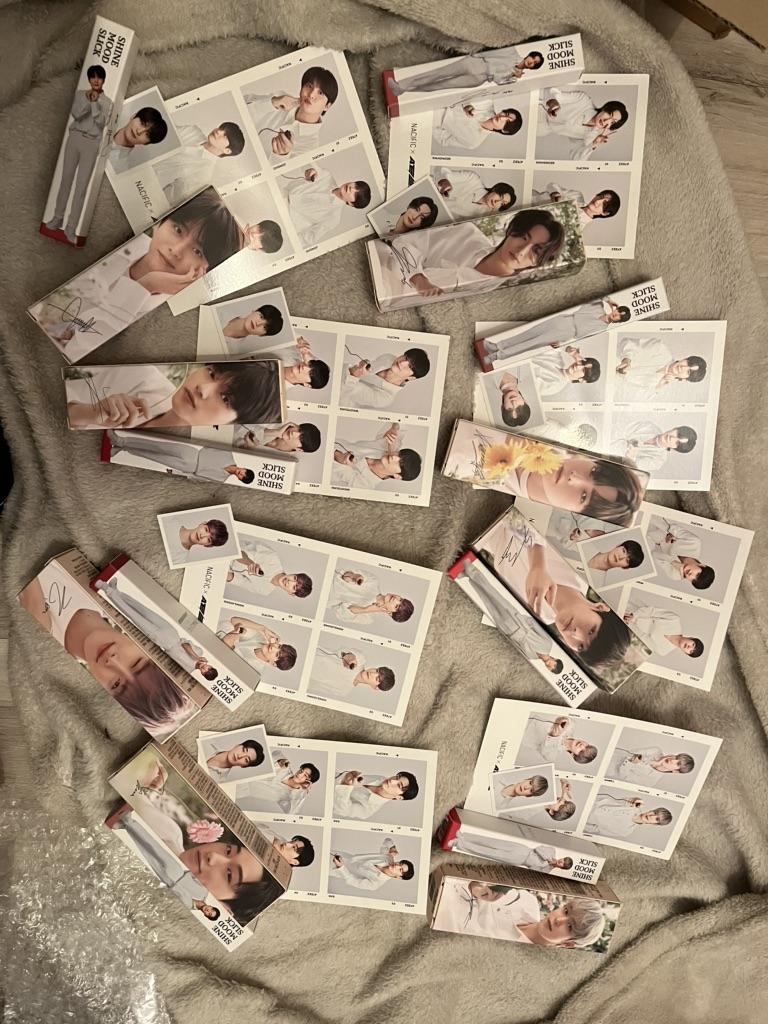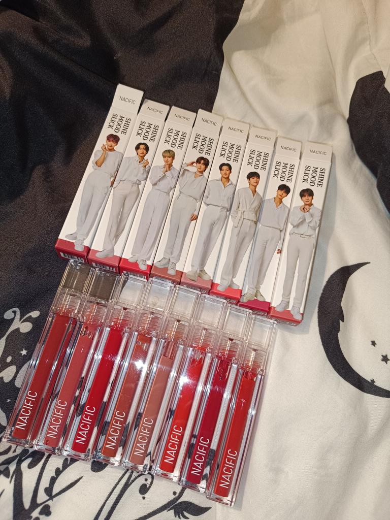 Wszystko dotarło w dobrym stanie, same odcienie mają przyjemną konsystencję, nie mają żadnego specyficznego zapachu i są bardzo trwałe!!! Nawet jeśli zmyjesz go płynem micelarnym, pigment nadal utrzymuje się na ustach przez długi czas :) swoją drogą odcienie są po prostu super, wszystkie bardzo bogate i jasne) Nie żałowałam, że go wzięłam, jestem Otrzymałem także zdjęcie identyfikacyjne z chłopakami, z czego się cieszę ♡ (na zdjęciu cień jest jongho, sassy mandarynka)