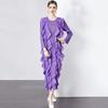 Xitao Sukienka patchworkowa z falbanami, długi rękaw, plisowana, temperamentna, elegancka, luźna, damska DMJ3992