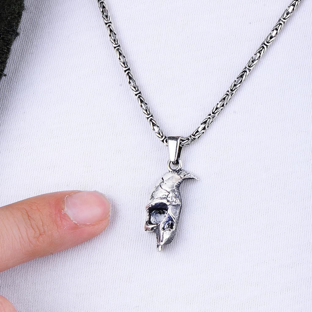 Uwolnij swojego wewnętrznego buntownika dzięki naszemu starannie ręcznie wykonanemu męskiemu srebrnemu wisiorkowi „Injured Half Face Skull” zawieszonemu na luksusowym bizantyjskim srebrnym łańcuszku. Ten przedmiot jest wyrazem odporności i świadectwem kunsztu rzemieślniczego, łączącego surową naturę kultury motocyklowej z wyrafinowanym rzemiosłem.