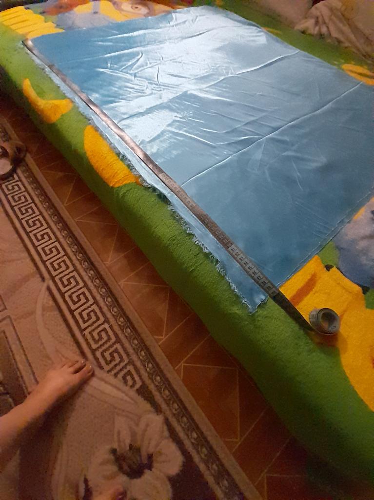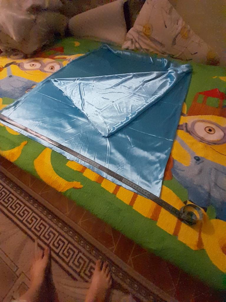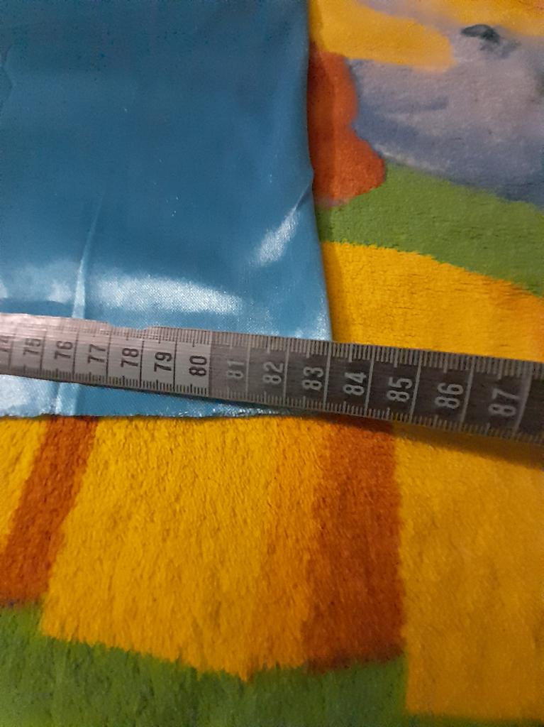 Zamawiałam dwa kawałki, przesyłka dotarła na czas. Wszystko w porządku. Długość po brzegu 1 metr, szerokość kawałka złożonego na pół 83 cm (166 cm). Tkanina cienka, lekko elastyczna.