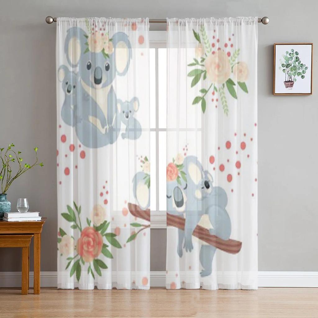 Śliczne szare Koala z kwiatami przezroczyste zasłony do sypialni tiulowe zasłony do salonu do zasłon woalowych okien kuchennych