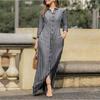 GMXIA Moda damska Lato Wiosna Jednolity kolor Drukuj Z długim rękawem POLO Dekolt Luźne, swobodne sukienki z guzikami