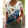 Modny Nowy Damski T-Shirt z Nadrukiem Kwiatowym 3D Letni T-Shirt z Krótkim Rękawem i Dekoltem w Serek Damska Luźna Odzież Casualowa Oversize Topy