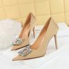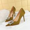 Damskie ultrawysokie obcasy na wysokim obcasie, jedwabne szpiczaste płytkie usta, pojedyncze buty z diamentową klamrą