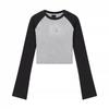 Y2k Vintage krótki top z długim rękawem t-shirty damskie koreański moda Harajuku Kpop estetyczne koszulki z nadrukami Patchwork jesień