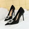 Modne, bankietowe buty na wysokim obcasie, damskie pojedyncze buty z płytkimi ustami i diamentowymi guzikami