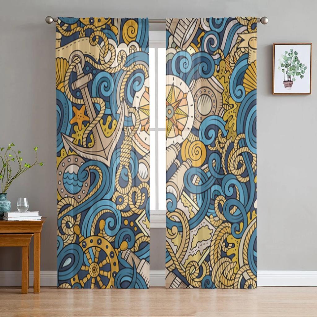 Cartoon Nautical Doodles przezroczyste zasłony do salonu przezroczysta tiulowa zasłona okienna sypialnia kuchnia Home Decor welon zasłony