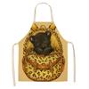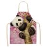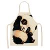 Lniany fartuch z wzorem kota i pandy, do domu, kuchni, gotowania, pieczenia, śliniak jadalny, narzędzie czyszczące, przeciwzabrudzeniowe, dla mężczyzn i kobiet