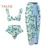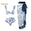 Dwuczęściowy kostium kąpielowy z nadrukiem w stylu retro w połączeniu z dopasowaną spódnicą plażową zapewnia modny i seksowny wygląd, który przyciągnie wzrok gdziekolwiek się udasz.
