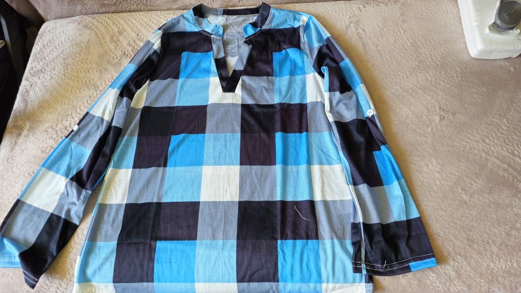 GMXIA Moda damska Casual Letnie, w kratę, z długim rękawem i dekoltem w kształcie litery V, luźne bluzki i koszule