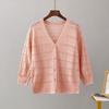 Sweter z długim rękawem, dekoltem w kształcie litery V, pulowerem dla kobiet, damski, jednokolorowy, z guzikami, cienkim, lodowym szyfonem, bluzkami, koszulami, miękki i oddychający, dzianinowy top