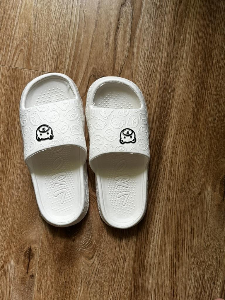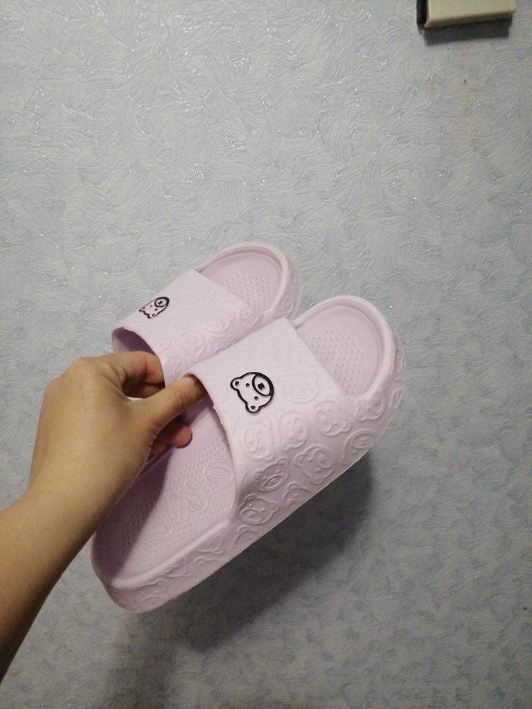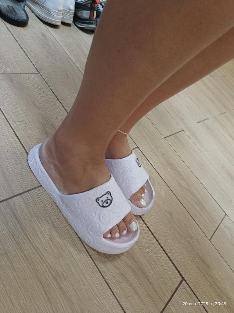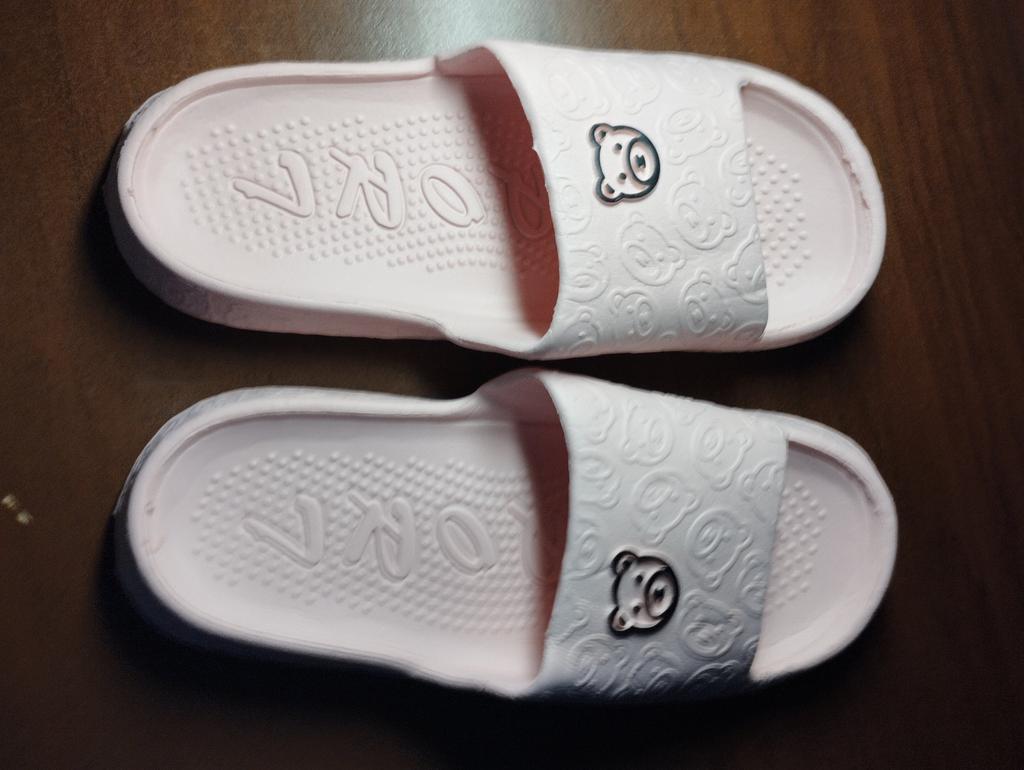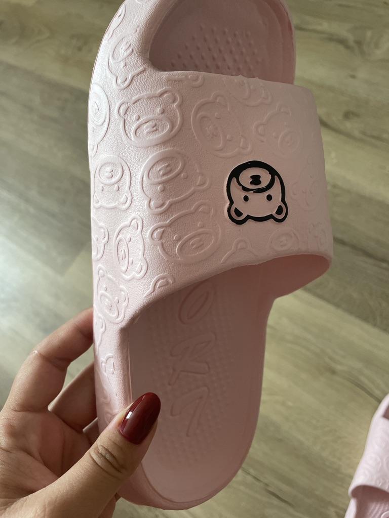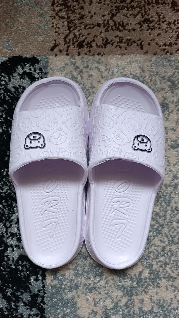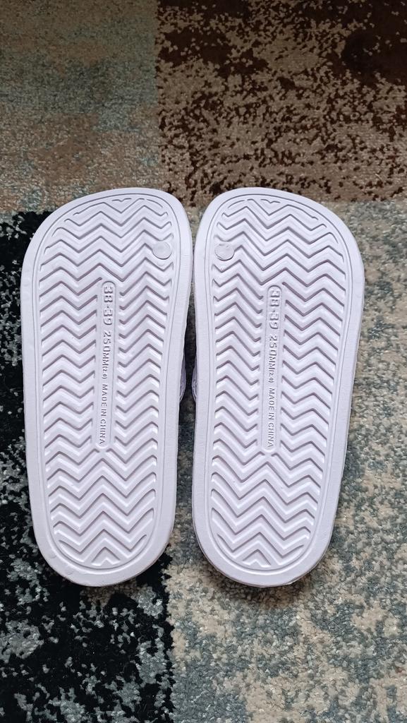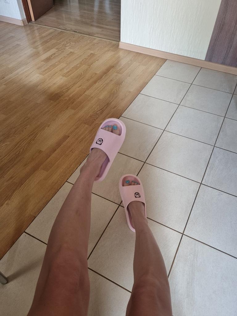 Nie patrzyłem na siatkę rozmiarów i wziąłem to po prostu według rozmiaru, a nie długości samego klapka. Moja noga ma 24,5 cm, a tutaj 38-39 to 24 cm. Ale same kapcie są normalne. Kolor jest taki delikatny, pastelowy