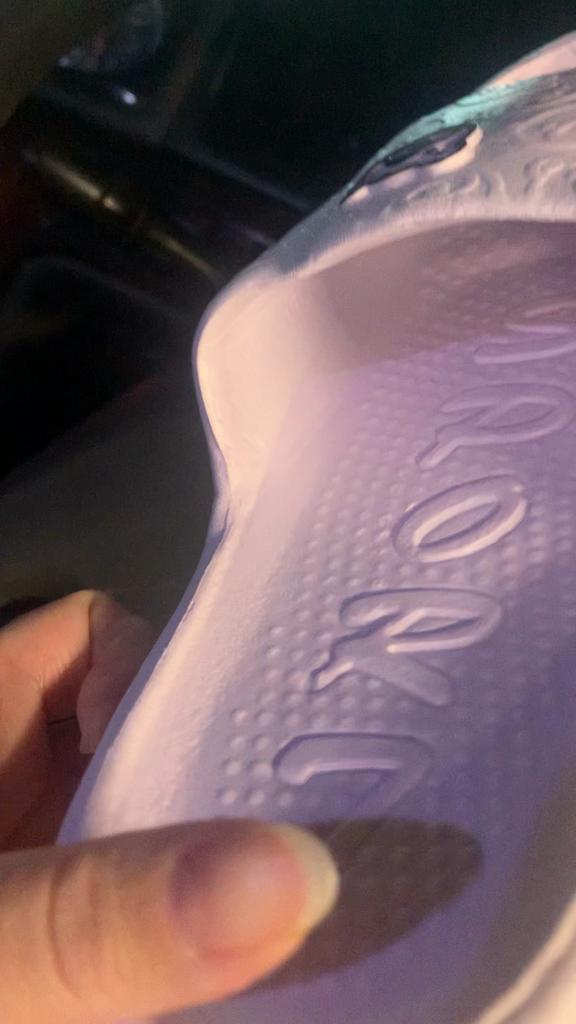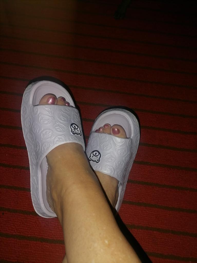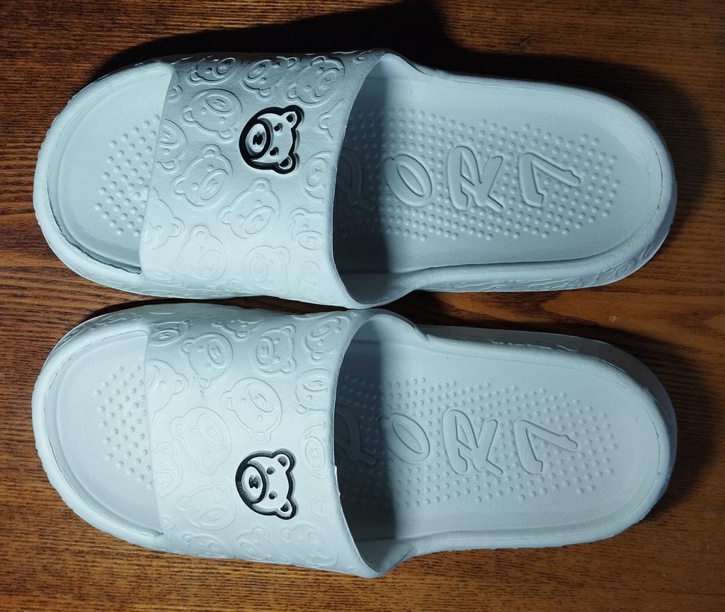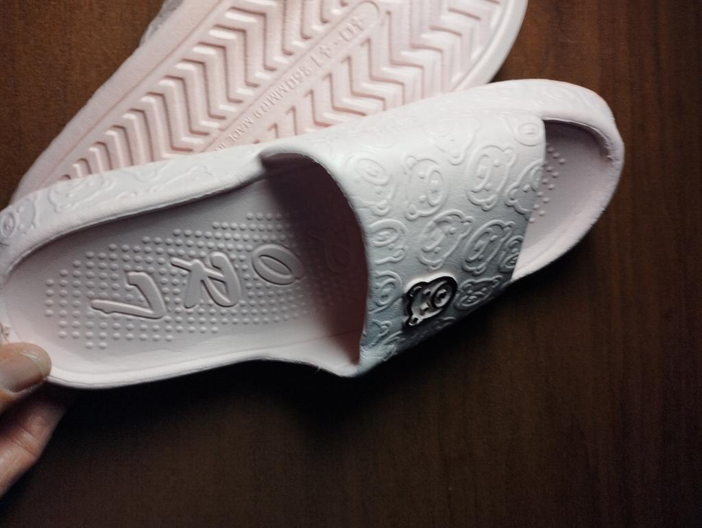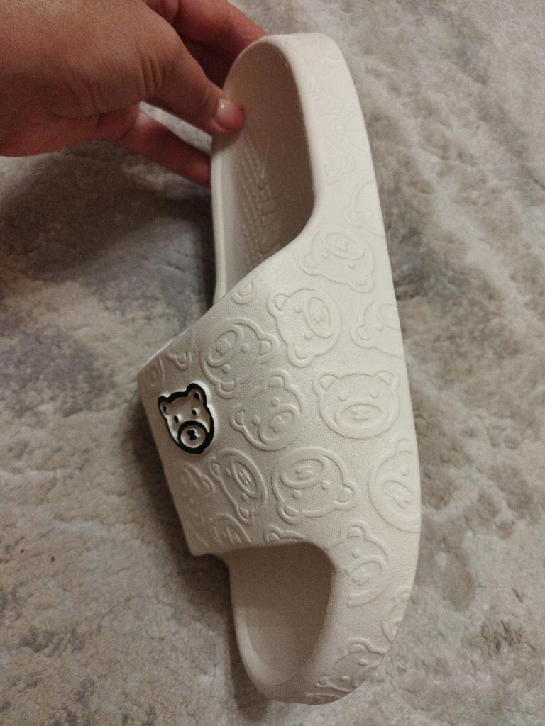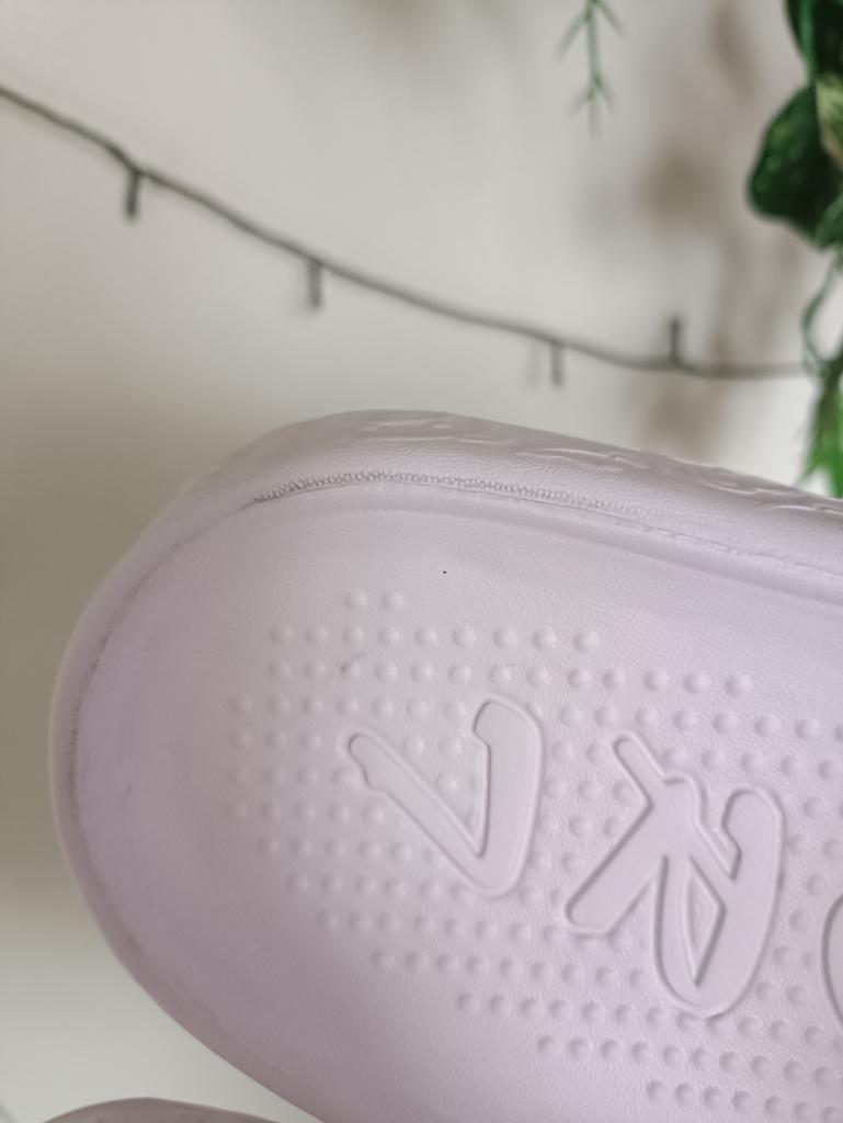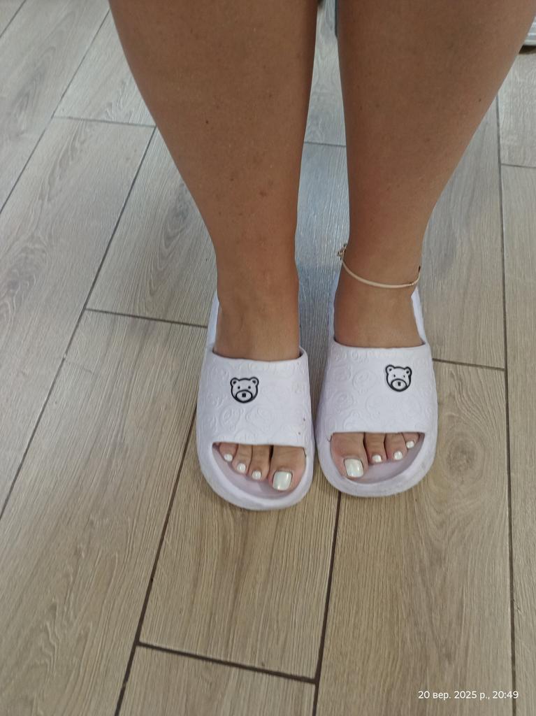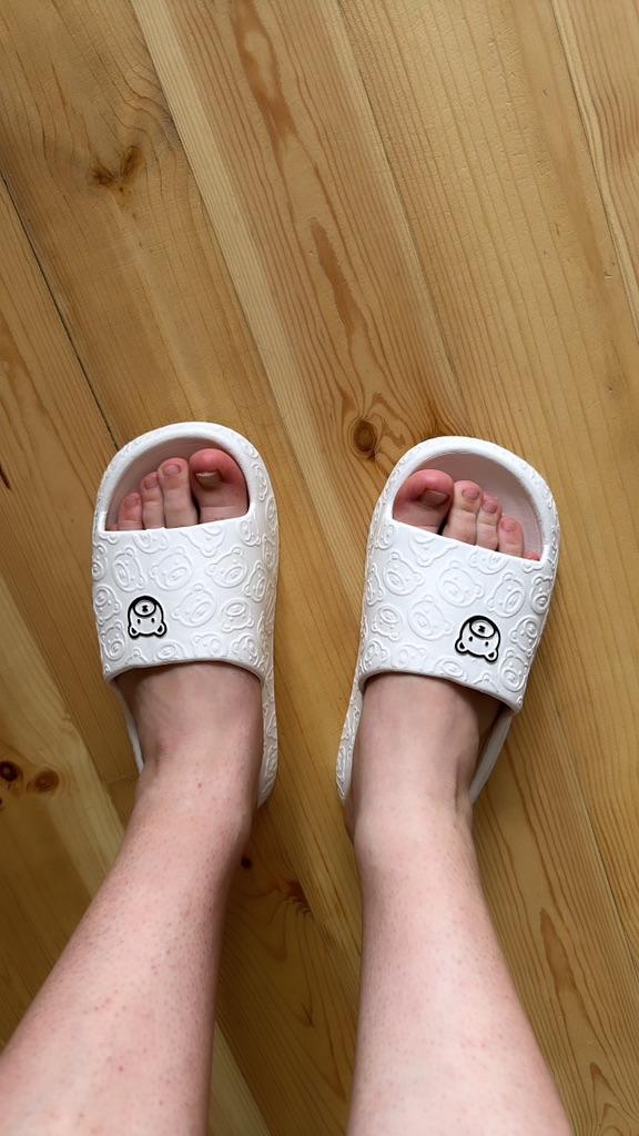 Nie patrzyłem na siatkę rozmiarów i wziąłem to po prostu według rozmiaru, a nie długości samego klapka. Moja noga ma 24,5 cm, a tutaj 38-39 to 24 cm. Ale same kapcie są normalne. Kolor jest taki delikatny, pastelowy