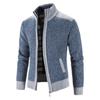 Nowa zimowa męska kurtka patchworkowa dzianinowy płaszcz modny kardigan odzież wierzchnia długie rękawy swobodny gruby smukły ciepły płaszcz z zamkiem błyskawicznym