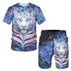 Mężczyźni T Shirt 2 częściowe zestawy letnia odzież sportowa stroje Vintage litery zwierząt 3D spodenki dres męskie Streetwear tygrys wilk wzór Tee zestaw