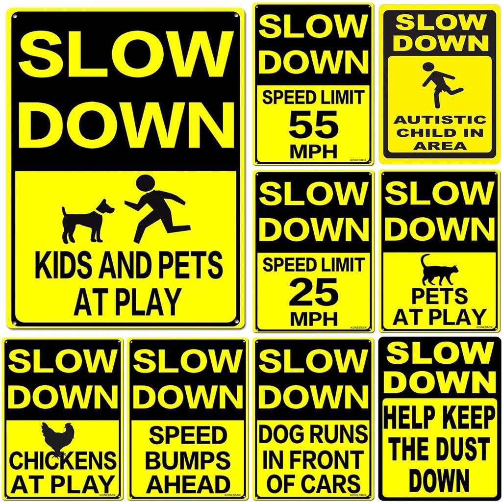 Retro Metalowe Tabliczki Spowalniaj Dzieci i Zwierzęta przy zabawie Plakaty Vintage do Domu Ogrodu Baru Jaskini Mężczyzny Kawiarni Dekoracja Ścienna Biura Prezent
