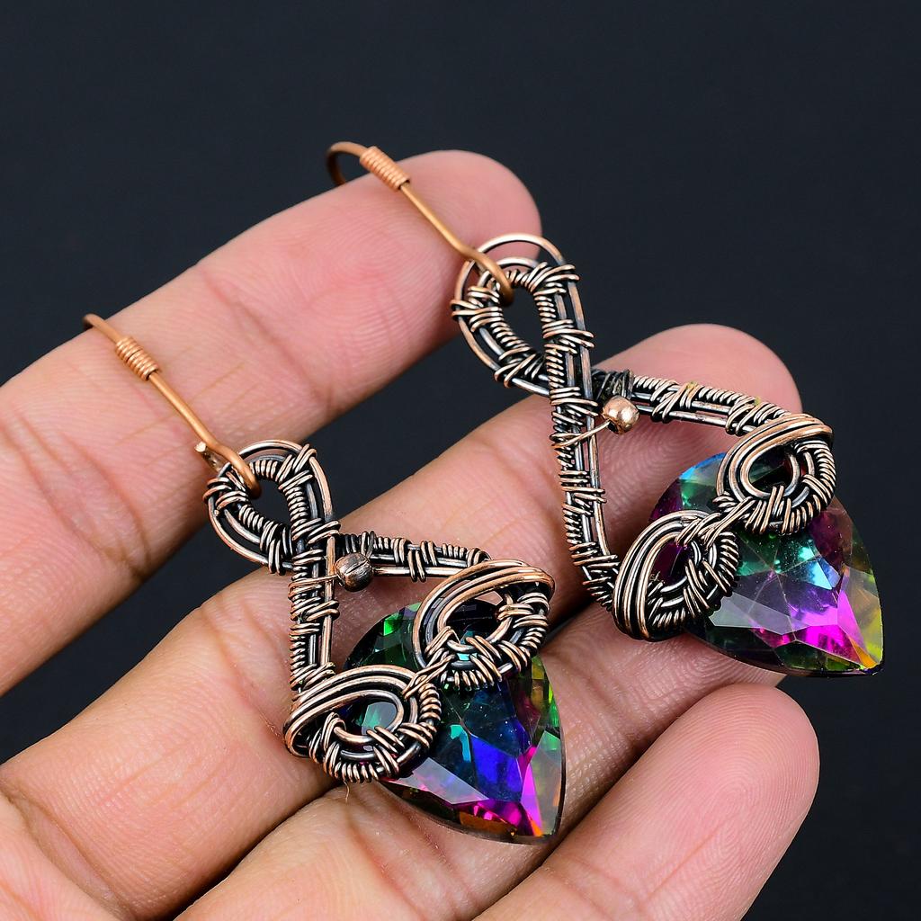 Naturalny mistyczny topaz szlachetny ręcznie wykonany miedziany drut kolczyk 2.64 s6S13