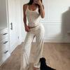 Styl: Postaw na prostotę i elegancję z tym koronkowym topem typu halter w połączeniu ze spodniami z elastyczną talią i wiązaniem. Swobodny, a zarazem szykowny design pasuje do każdego typu sylwetki i grupy wiekowej, dzięki czemu jest uniwersalnym uzupełnieniem Twojej kolekcji odzieży domowej.