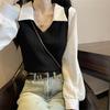 Wiosenno-jesienny dekolt w serek z łączonymi klapami i rękawami typu latarnia, dwuczęściowy, krótki top z dzianiny damskiej z długim rękawem