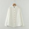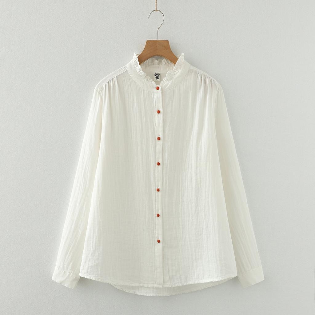 Koszule damskie białe z koronką i stójką, podwójna bawełniana przędza, bluzki z długim rękawem, kolorowe guziki, luźne bluzki damskie
