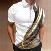 Koszula męska Polo Casualowy zamek błyskawiczny z krótkim rękawem Modny swobodny zamek Letnia wiosna Regularny krój Koszula z nadrukiem 3D w kolorze złotej krzywej
