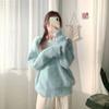 Swetry z imitacją norek z dekoltem w kształcie litery V, damskie, zagęszczone, dzianinowe swetry, damskie, jesienne, zimowe, ciepłe, solidne, luźne swetry na co dzień
