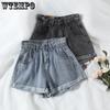 Women Summer Large Size Denim Shorts Versatile Vintage Loose Light Blue Wide Leg Casual A-line Streetwear Elastic Waist Shorts