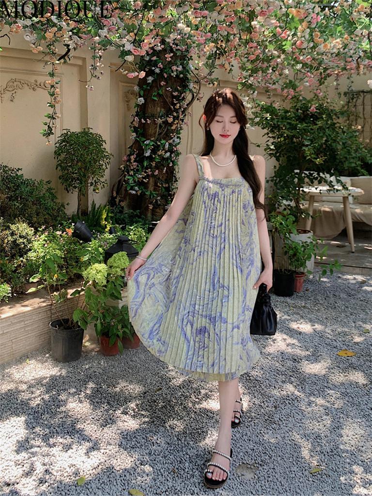 MODIQUE Summer Women Elegant Floral Print Casual Beach Sleeveless Chiffon Girly Halter Short Dresses Holiday Lady Fairycore Sweet Dresses